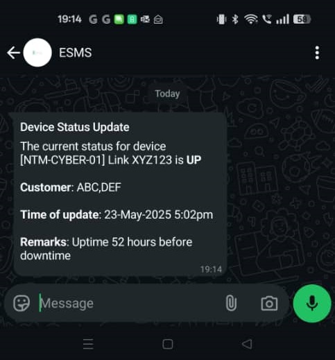 | message | String | A short description of given status, for more information you may contact our support team at support@esms.com.my |