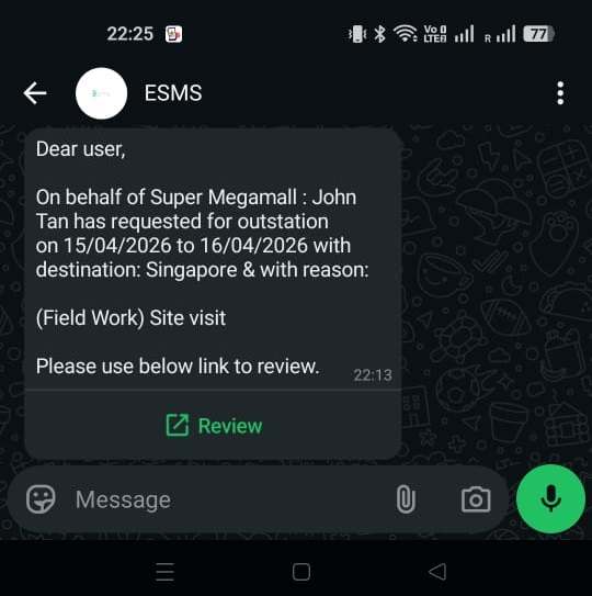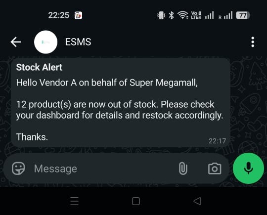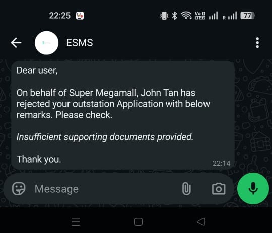 | 3 | Invalid username/password combination. If you believe this is an error, kindly contact our support team at support@esms.com.my. |
